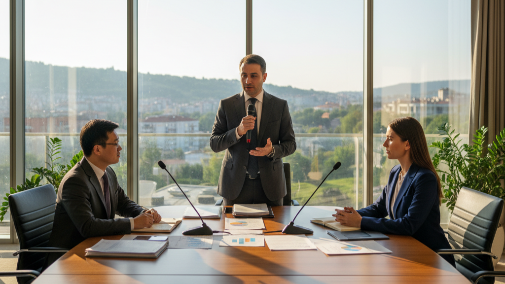 Yabancı ortaklarınızla yapacağınız kritik bir yönetim kurulu toplantısı veya iş yemeği için bir bursa toplantı tercümanı gerekir. Bu tür durumlarda bursa ardıl tercüme, iletişimin en pürüzsüz ve samimi şekilde ilerlemesini sağlar. Bursa toplantı tercümanı olarak görevlendirdiğimiz uzmanlarımız, iş dünyasının diline ve protokol kurallarına hakimdir. Profesyonel bir bursa toplantı tercümanı, başarınızın anahtarı olabilir.