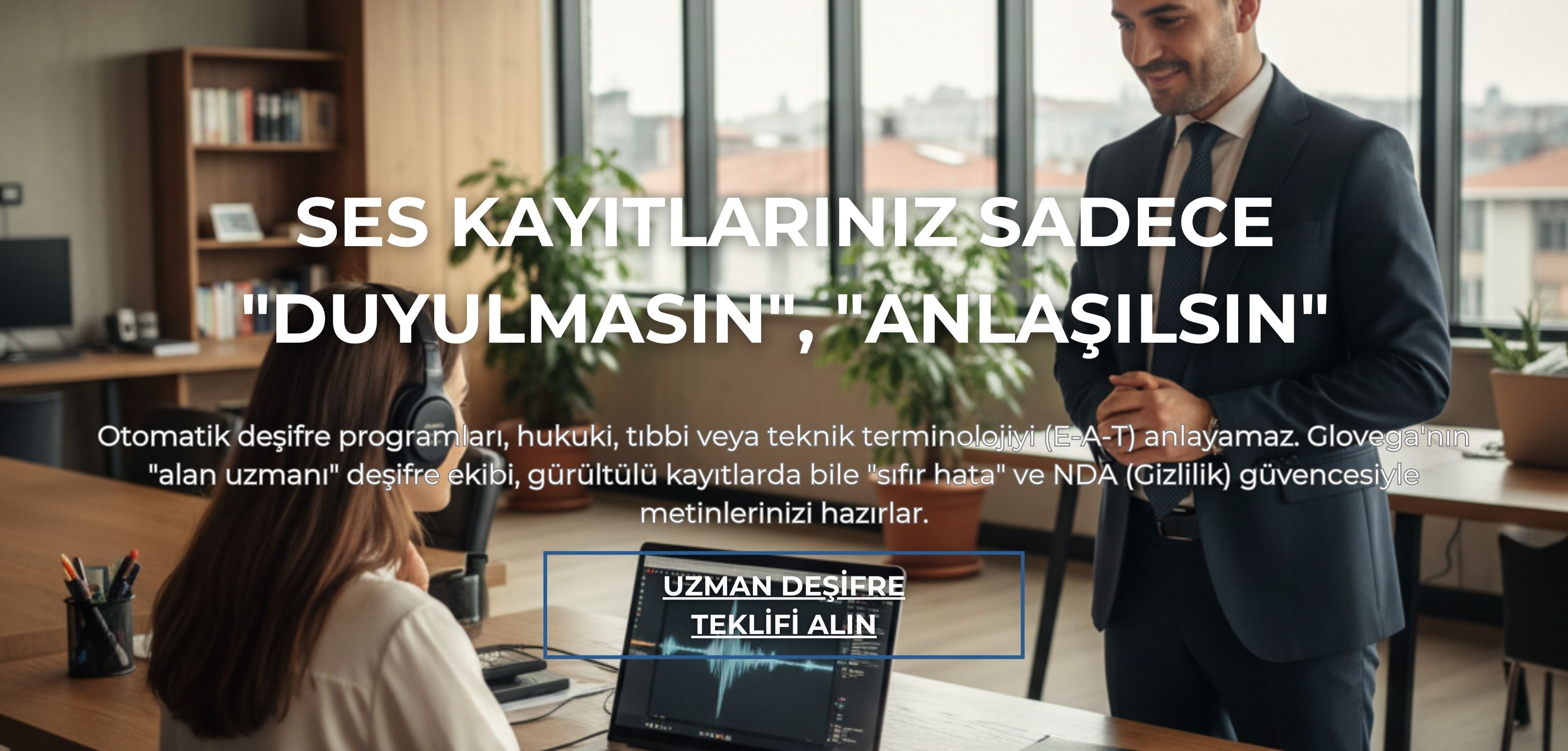 Yüksek riskli (YMYL) hukuki, tıbbi veya akademik metinlerde, "otomatik (AI) deşifre" bir kolaylık değil, büyük bir risktir. "Uzman (insan) deşifresi", bu riski sıfırlar. Kaliteli bir "sesi yazıya dökme" hizmeti, "otomatik (AI) deşifre" programlarını kullanamaz. Glovega, "sesi yazıya dökme" işlemini bir profesyonel deşifre hizmeti olarak sunar.