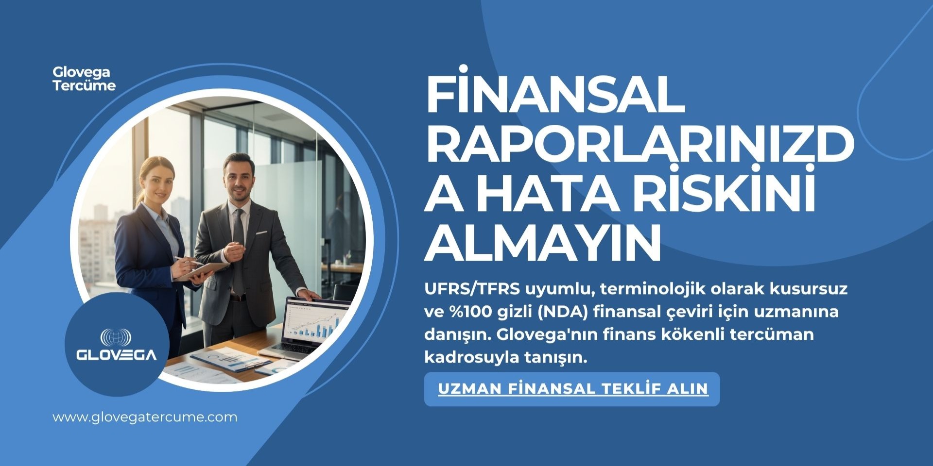 Glovega Tercüme olarak, bankacılık, denetim ve sermaye piyasaları alanındaki sektörel deneyimimizi, yasal uyumluluk bilgimizle birleştiriyoruz. Sunduğumuz ekonomi & finans tercüme hizmeti, sadece dili bilen değil, finansı bilen eski bankacı, denetçi ve ekonomistlerden oluşan uzman kadromuz tarafından yürütülür. En büyük önceliğimiz, finansal verilerinizin doğruluğu ve ticari sırlarımızın gizliliğidir. İster bir bilanço çevirisi ister kapsamlı bir yıllık faaliyet raporu çevirisi olsun, her projeye aynı hassasiyetle yaklaşıyoruz.