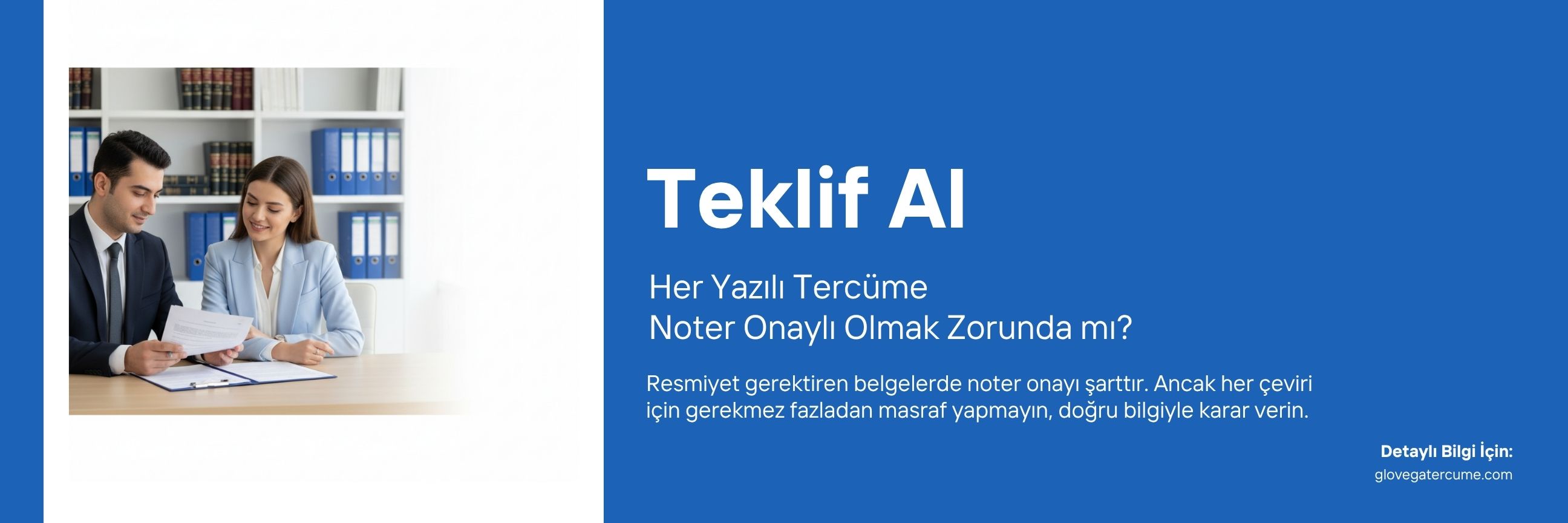 Görüldüğü gibi, "Her yazılı tercüme noter onaylı olmak zorunda mı?" sorusunun cevabı, belgenizi nerede ve ne amaçla kullanacağınıza bağlıdır. Hangi belgeler noter onayı ister, ne zaman yeminli tercüme yeterli mi? Bu soruların cevabı bütçenizi doğrudan etkiler.