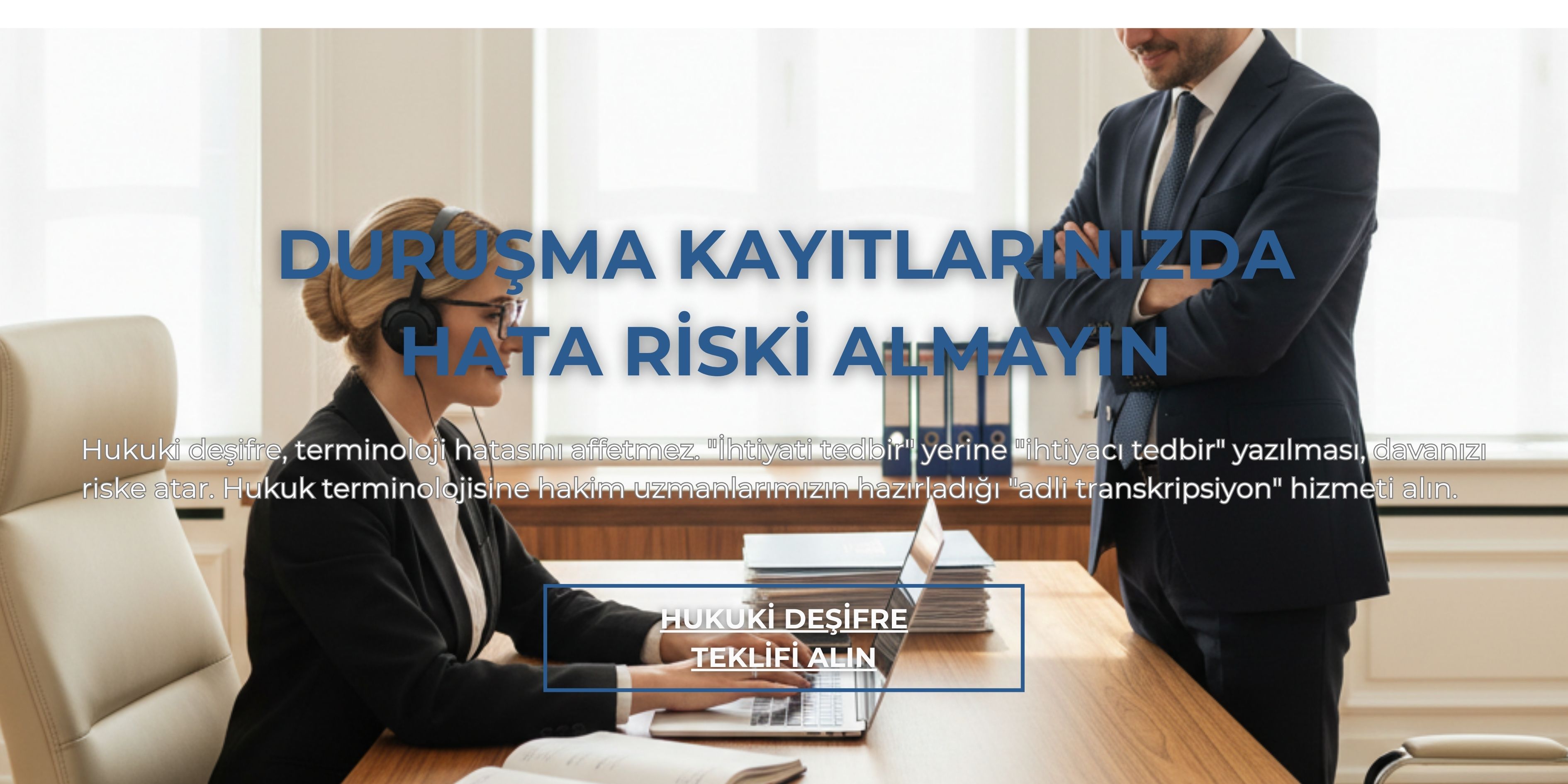 "Hukuki deşifre nedir?" sorusunun cevabı: Mahkeme, duruşma, sorgu, ifade veya hukuki toplantı gibi yasal süreçlere ait ses/video kayıtlarının, hukuk terminolojisine hakim uzmanlar tarafından hatasız ve yasal formata uygun olarak yazıya dökülmesi (transkripsiyon) işlemidir.